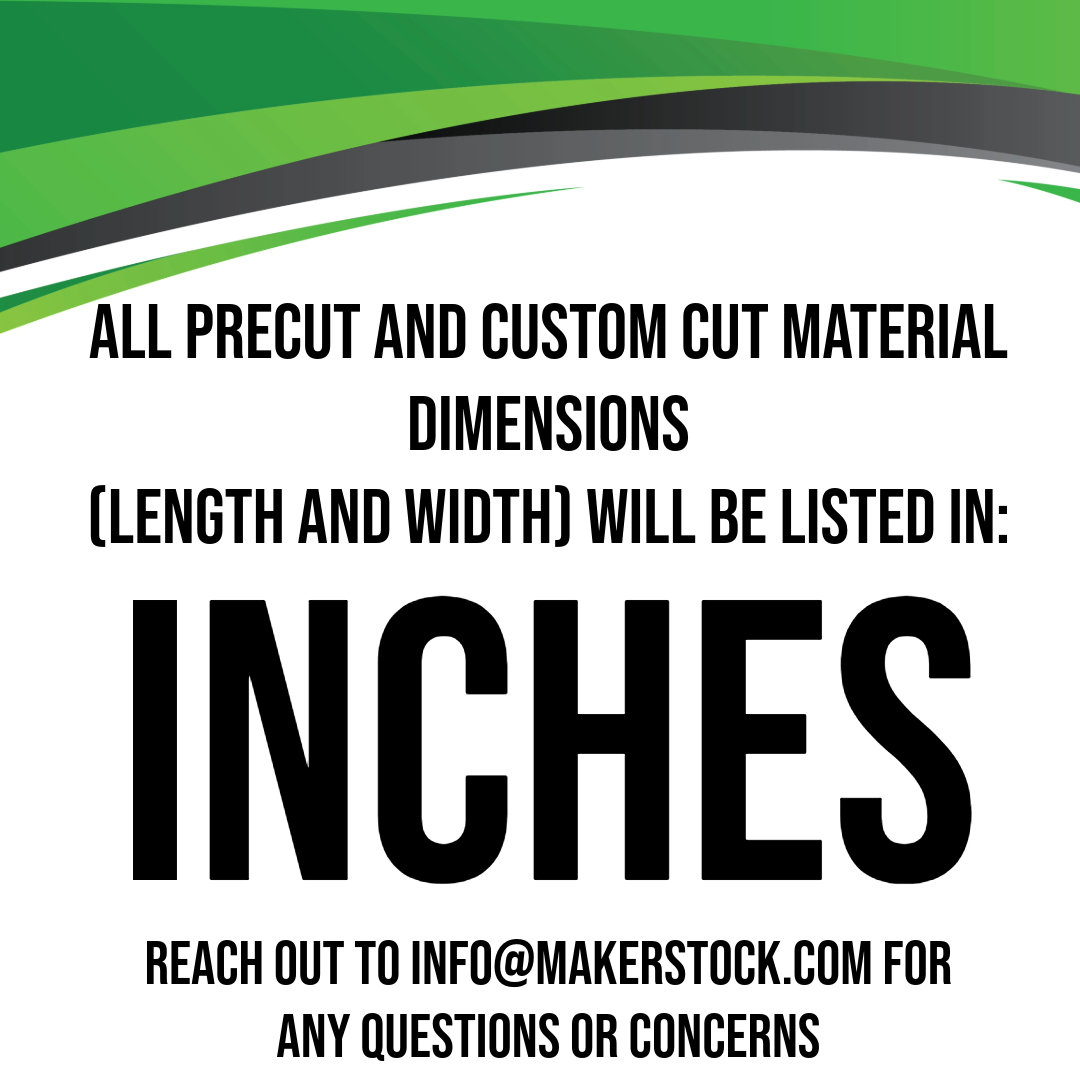 Get the perfect fit for your project with our Custom Cut service. Explore possibilities beyond our 10+ stock size options. Order custom cuts up to 24” x 48” for standard $12 flat-rate shipping per 50lb box. For larger sizes, email sales@makerstock.com for a custom shipping quote. With ±0.188" tolerances and 2–4 day lead times, let us save you time and effort.