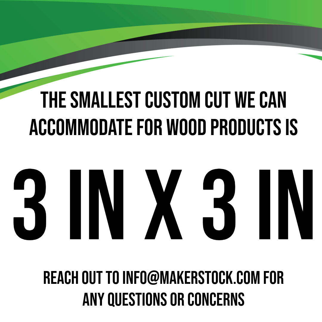 Get the perfect fit for your project with our Custom Cut service. Explore possibilities beyond our 10+ stock size options. Order custom cuts up to 24” x 48” for standard $12 flat-rate shipping per 50lb box. For larger sizes, email sales@makerstock.com for a custom shipping quote. With ±0.188" tolerances and 2–4 day lead times, let us save you time and effort.